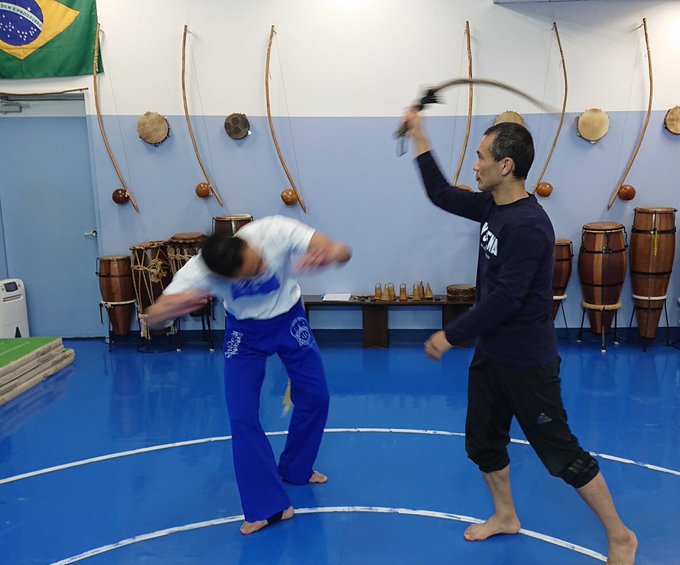 水泳やってる生徒さんから、カポエィラはじめてからバタ足が速くなったと言われた。今。なるほど、カポエイラのキックの時、脚を体幹から長く使えっていつも言ってるのがバタ足にも効くのか~~。まあ、俺は水に浮かないから水泳苦手ですけどね。