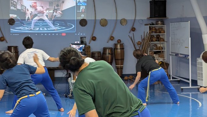 ブラジル本部のトニー先生のオンラインレッスン。今日は12人参加。 ちゃんとブラジルと毎週繋がっているカポエイラ道場です! カポエイラ・テンポ東京、生徒募集中!
