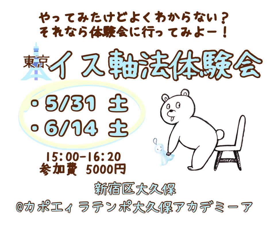 ※イス軸法パーソナルレッスンでは、体験クラスで教える事を禁止されている技術も、基礎が身についた方にはお伝えできますので、興味ある方はお問い合わせ下さい。